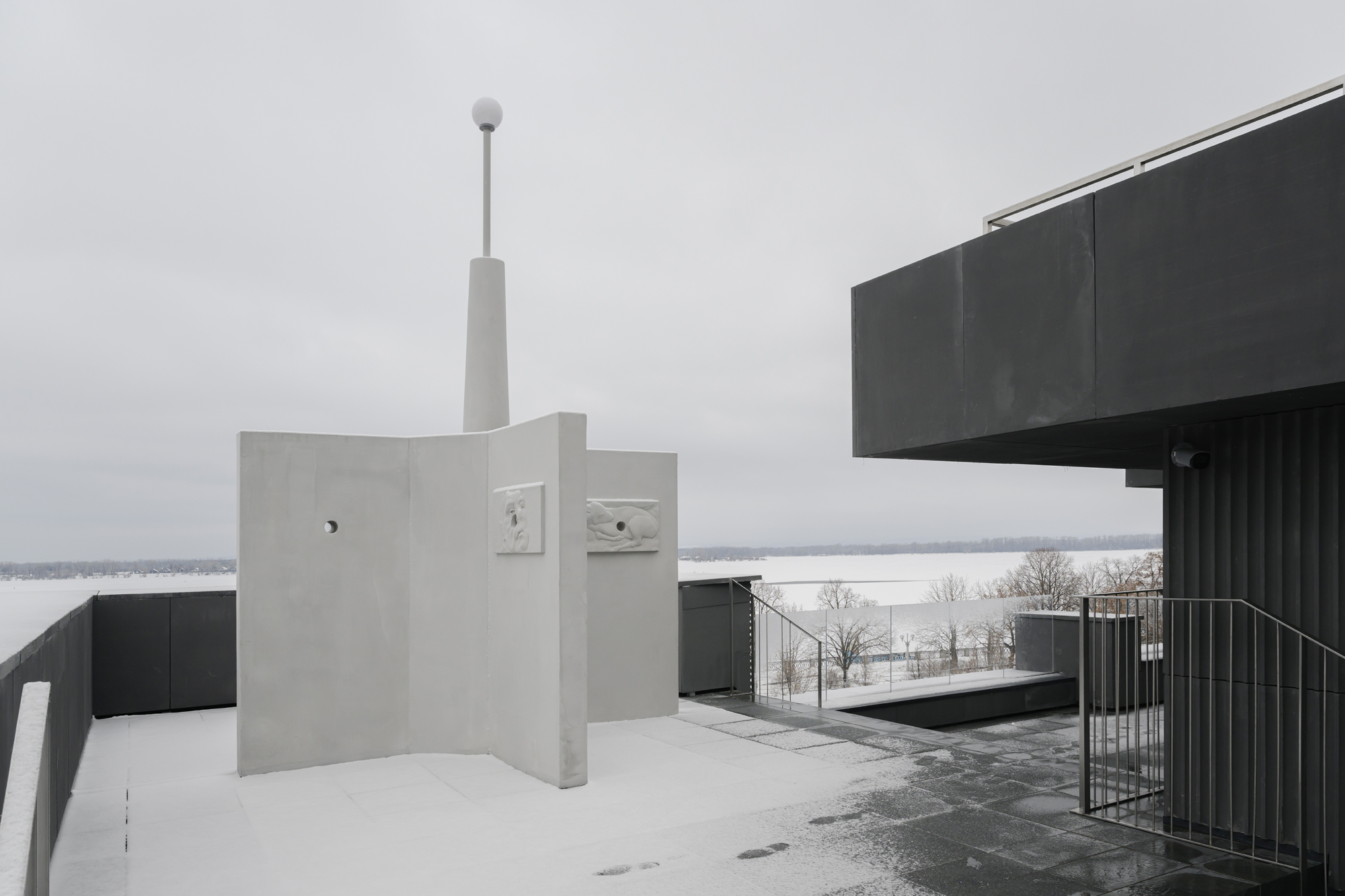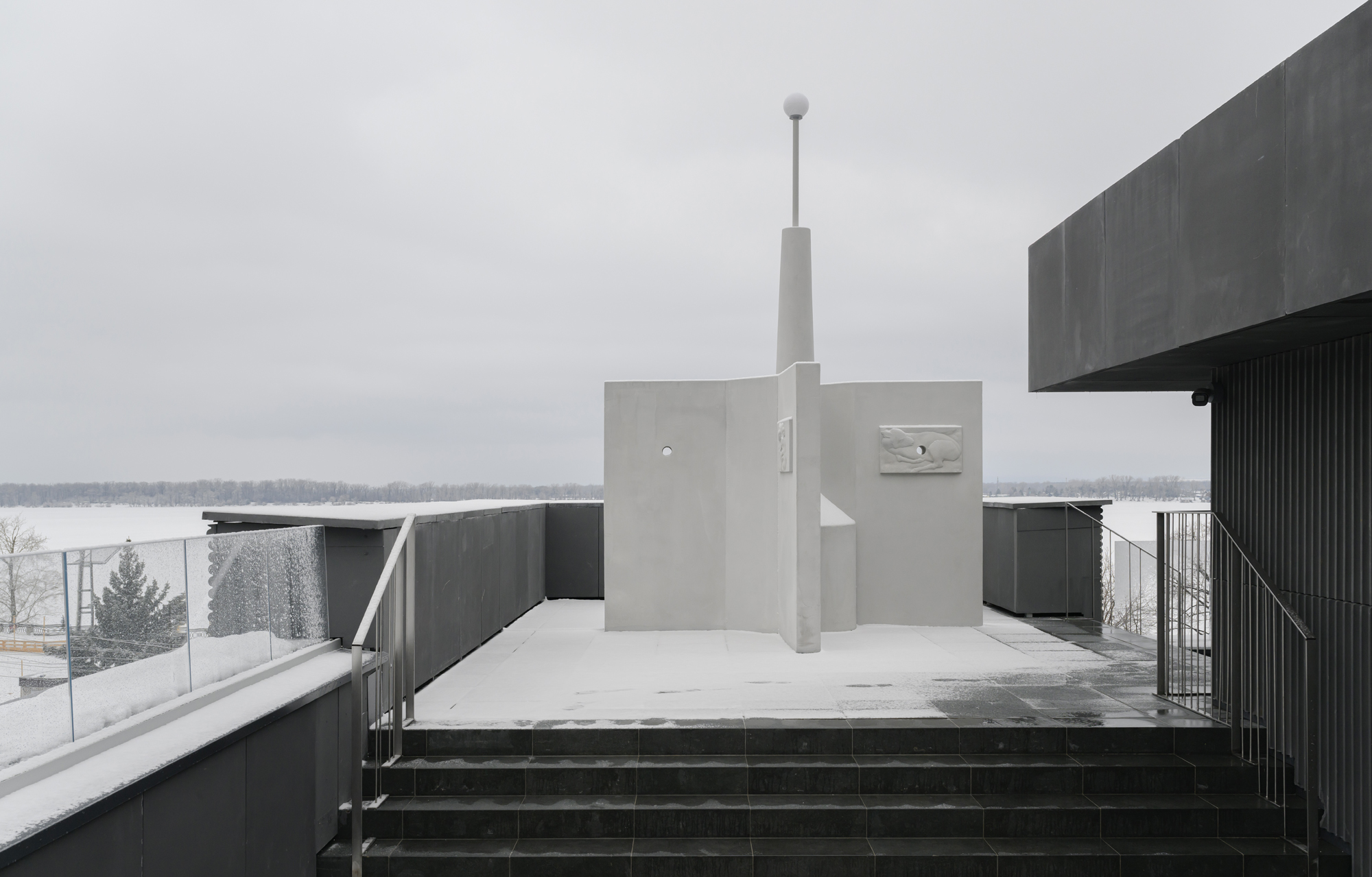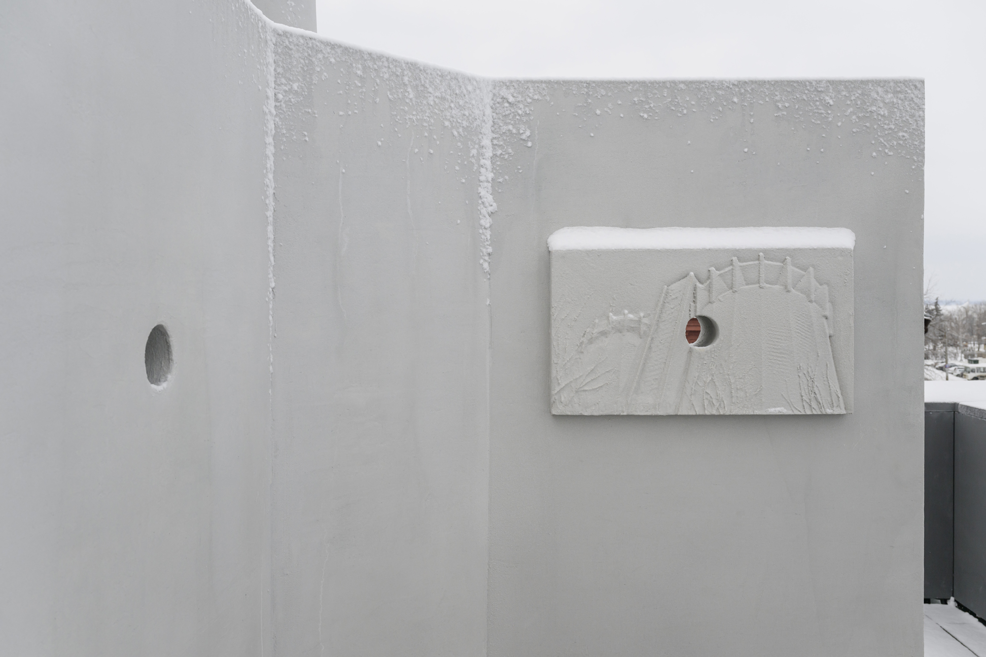 «Крылья» объекта дополнены барельефами, сюжеты которых отсылают к сентиментальным моментам пребывания Игоря Самолета в Самаре в марте 2025 года. Так он одушевляет строгую архитектурную форму и связывает себя с городом, делая историю «Солнышка» более личной.